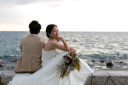 エメラルドのように綺麗な海をbackに。たなびくベールが美しいですね^^