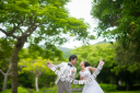 お次は、公園での撮影。木漏れ日が2人を照らしてくれます。