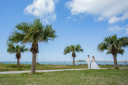 素敵なお二人とピンクのブーケが青い海と空に映えますね!!