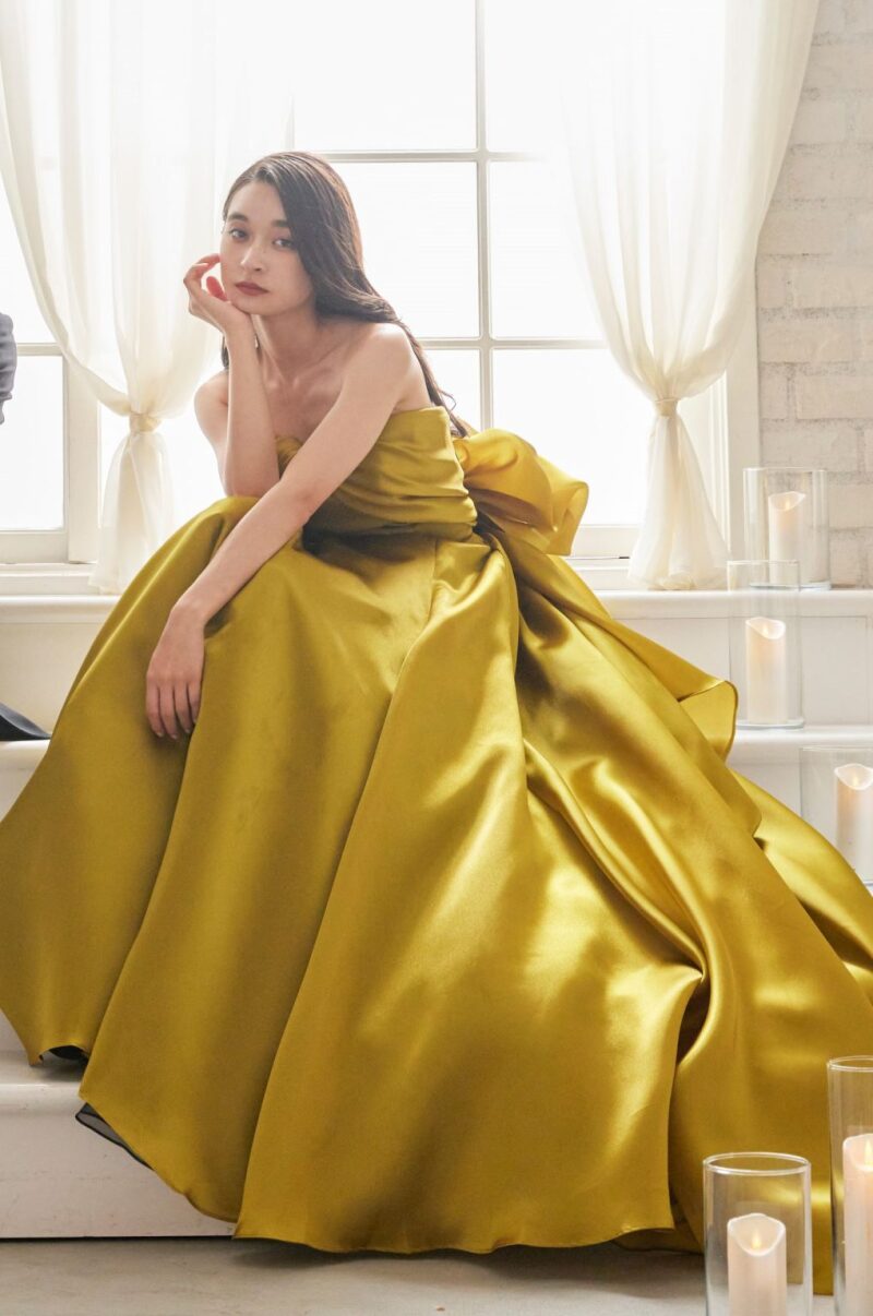 パッと目を引くイエローカラーのドレス