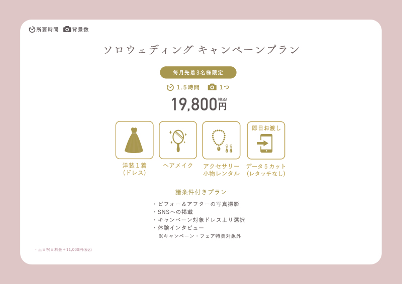 ソロウェディングは幅広い年齢層の方がさまざまな理由でご撮影されるので、年齢や既婚・未婚を気にする必要はございません。