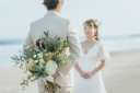 ブーケのラストショットはこちらの朝日をバックにキスショット