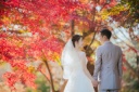 紅葉がとても綺麗ば場所で新婦さまのソロショットを撮影