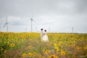ひまわり畑を散歩していただき自然体なおふたりを撮影