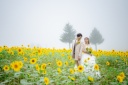 ひまわり畑は雲の中で幻想的な雰囲気での撮影となりました