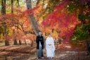 ウエディングドレスに色直しをして紅葉に囲まれての一枚