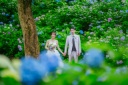 紫陽花をバックに笑顔のおふたりを撮影させていただきました◎