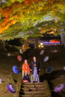 バックのグリーンと、赤い番傘が、新婦様の美しさを引き立ててくれます。