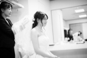 親御様が見て喜ばれる花嫁姿のソロショット。笑顔いっぱいのお二人ですが、ここは真剣に!