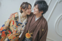 クールな表情もとっても素敵なお二人。浅草らしい背景をバックに。