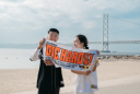 海をバックに♡