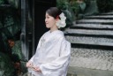 相楽園にて休憩がてら、ベンチに座っての撮影です。着付師も同行しますので、都度お直し致します☆