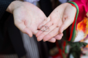 とても身長の高いご新郎様。ご新郎様を見つめてくださーいとお願いすると少し照れくさそうな笑顔のご新婦様。