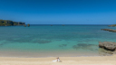 天然ビーチで淡いブルーのドレス。青い空、エメラルドグリーンの海ともマッチします!