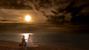 今回、おふたりにとって結婚式に代わるビーチでのフォトウエディング。挙式のようなセレモニーシーンを演出させていただきました。