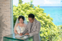 追加オプションのドローン撮影では、恩納村の素晴らしい壮大なロケーションの中にいるおふたりをとらえます。