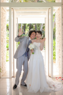 撮影の時に、お揃いの小物を使ってみるのも楽しいです。とてもおふたりらしい写真になります。まずは南の島らしく「帽子」でナイスショット!