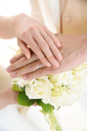 南の島のサンセットが海にきらめき、遠くにいるおふたりですが、多分、素敵な満面の笑顔だと思います。お幸せに。