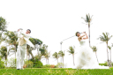 ストローハットを使った動きのあるショットにもチャレンジ。見事に飛ばしていただきました!