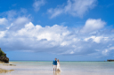 青い空、白い雲、防波堤。沖縄恩納村の自然の中で、未来を見つめるおふたりをカメラにおさめました。