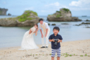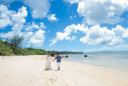 海のキラキラ感をバックに、ロマンティックにダンスシーン。おふたり、とても決まってます!