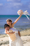 軽々と抱き上げる新郎様。最高のロケーションで、幸せの時間を。