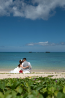 ヤシの木と海と空があいまって、ふたりのシルエットが美しい1枚に。