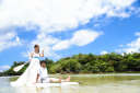 淡いカラードレスのお姿が水面に映って・・・。透明度の高いビーチで、しっとりとした大人の一枚。