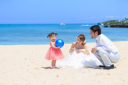 海バックに沖縄らしい岩場での撮影。あるがままの自然にとけこむおふたり。