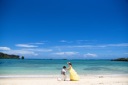 チャペル横、目の前に広がるムーンビーチの輝く海と空。至福の時を永遠に残しました。