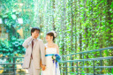 自然が好きな新婦様。ふくぎ並木に並んでのショットは、大人っぽくかわいい雰囲気に。