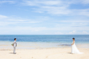 海と沖縄感あふれたロケーションで、バックショット。淡くやさしいナチュラルな雰囲気で。