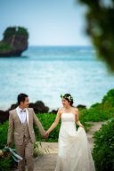 沖縄らしい自然美をつくる海辺の岩場で、そっとおでこを寄せて。