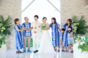 ドレスを着たままのウォーターショットも、みんなおそろいのカジュアルシャツで、よりリゾートらしく。