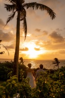 ビーチフォトのラストは、家族みんなで見守って、おふたりの誓いのシーン。お子様の笑顔の拍手で、楽しい家族でのフォトウエディングを終えました。