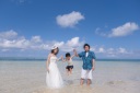 初めての沖縄への家族旅行。おめかししてビーチでの撮影を。