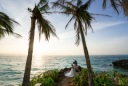 ムーンビーチは思い出深い場所。エメラルドグリーンの海での前撮りは、憧れの一枚。