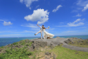 ロングベールを使って、風のある沖縄だからこその美しい撮影も。