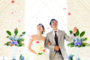 祭壇の向こうには青の世界。ロングベールをまとい、息をのむように美しい写真を永遠に残します。