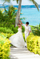 ビーチのあとは、緑あふれるガーデンで。リラックスムードのふたりをカメラにおさめます。