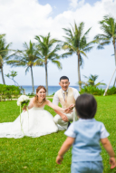 エメラルドグリーンの海とガーデンが素晴らしいロケーションで、ラストは幸せショットを。