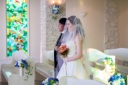 ビーチ、ガーデンでの撮影のあとはチャペルへ。ご入場後、ドレストレーンも美しい後ろ姿を。