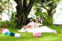沖縄の自然に溶け合うように佇むおふたり。新しい命に語りかけているお姿が印象的です。