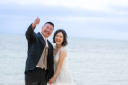 結婚式で使う前撮り写真。ビーチは、エメラルドグリーンの海と真っ白な砂浜が広がります。
