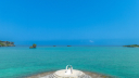 屋根のないビーチでは、新郎様がパラソルで影をつくってあげての休憩タイムを。