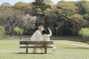 満開のさくらの木の下でくっついてぎゅーーーー!!!!