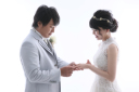 純白タキシードとドレスの正装姿。婚礼の定番ポーズです。