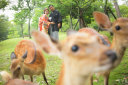 しかせんべいをあげているお二人近づいてくる鹿さんに思わず笑顔に☆
