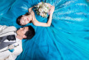 お持ち込みいただいたバルーンを持って。「飛ばされる~」のポーズ。お二人の表情もバッチリです!