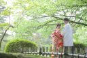 和装に着替えて兼六園に移動!手をつないで振り返って♡